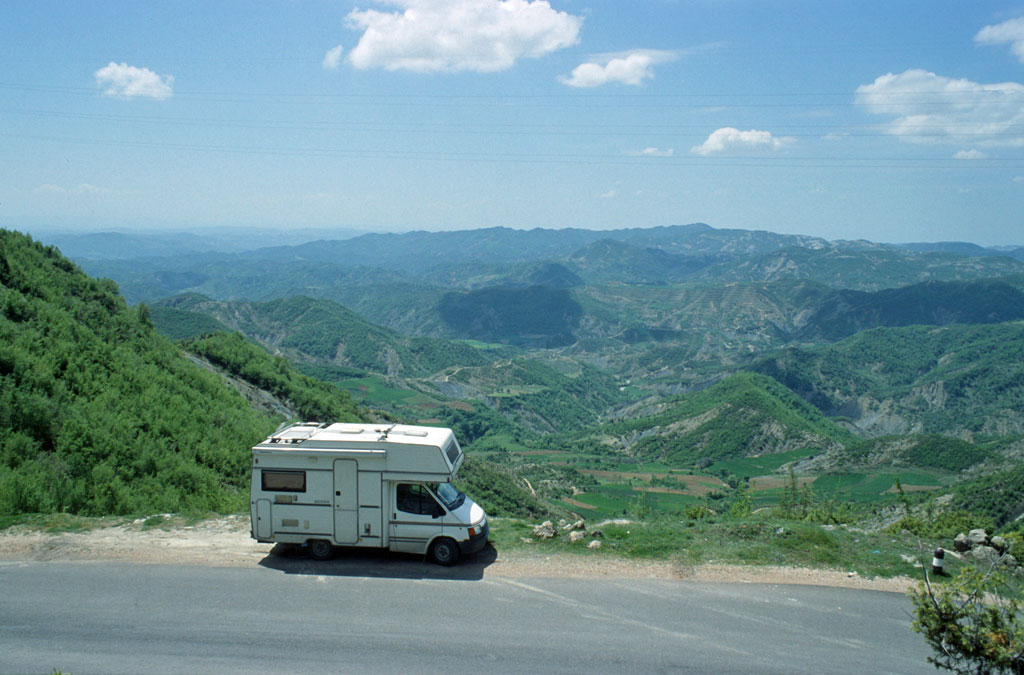 Eine Tatsache, die ich zunächst zu verheimlichen versuchte, weil es unnormal war. Doch immer öfter stellte ich fest, dass die Menschen Interesse an dieser Lebensweise haben und ich verfasste neben meinen üblichen Reiseberichten auch einen Online-Erfahrungsbericht über das Leben im Wohnmobil. Allerdings mit einem Handicap. Damals gab es noch keine Smartphones und Tablets, geschweige denn mobiles Internet. So musste ich sämtliche Internettätigkeit auf Tage verschieben, an denen ich den Computer meiner Eltern nutzen konnte (danke für deine Geduld, Mama 😉 ). Bei schönem Wetter und vorhandener Stromleitung baute ich mangels Laptop auch manchmal meinen Computer vor dem Wohnmobil auf – so wie auf dem Foto, das auf einem bulgarischen Campingplatz entstand.