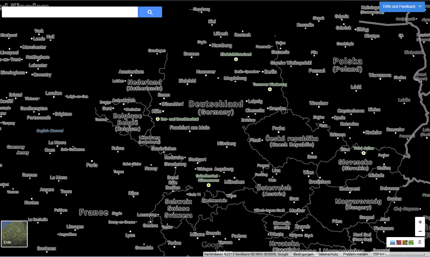 Voller Vorfreude startete ich heute morgen meinen Rechner und blickte kartografisch in die Dunkelheit. Deutschland bei Nacht – so lautete der Titel, als ich unser Land und unseren Kontinent in schwarz sah, durchzogen von irgendwelchen Linien, die wohl die Straßen darstellen sollen. „Na gut, das ist wohl ein Beta-Test und es läuft noch nicht alles so reibungslos. Kann ich mit leben, wird sich sicherlich noch geben“ – waren meine ersten Gedanken.