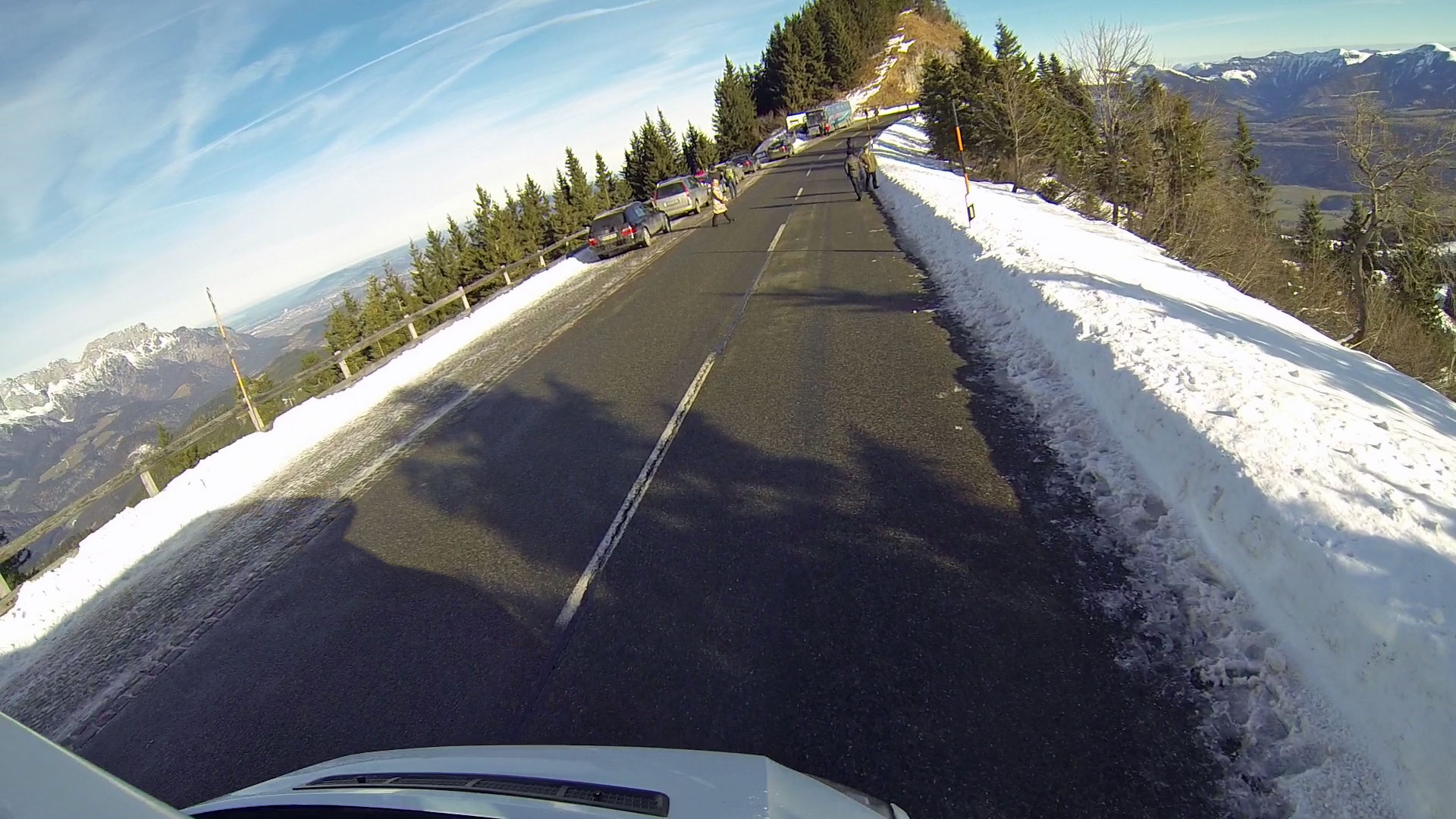 Ganz witzig ist dabei noch die Tatsache, dass man sich stellenweise auch auf österreichischem Boden befindet, denn genau auf dem Kamm verläuft die Grenze zwischen Deutschland und Österreich und so reist man mit dem Auto bei der Auffahrt nach Österreich ein und bei der Abfahrt wieder aus – ohne die Gelegenheit gehabt zu haben, den Rest von Österreich befahren zu können.