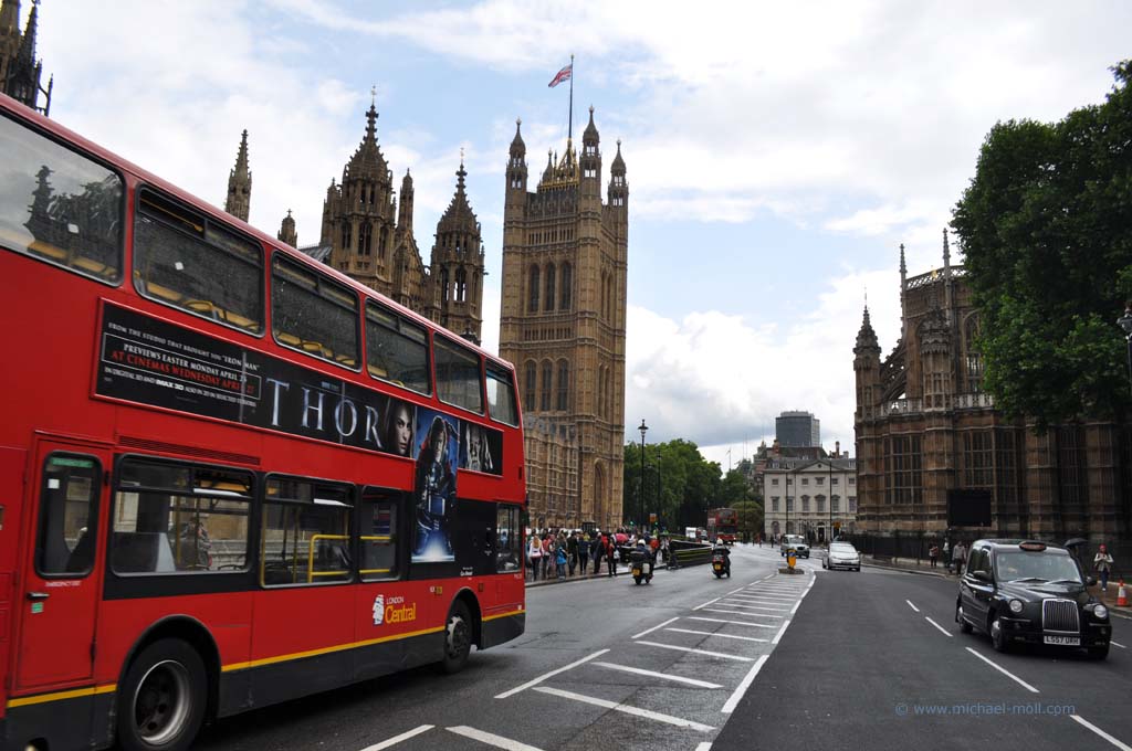 Mit dem Auto durch Niederlande, Belgien bis in das französische Calais, von dort mit der Fähre schnell über den Armelkanal und dann den Rest bis zum Ibishotel am Londoner Flughafen Heathrow. Dieser liegt fast 30 km außerhalb der Stadt, hat aber durch die Metro (The Tube) eine wunderbare Anbindung.