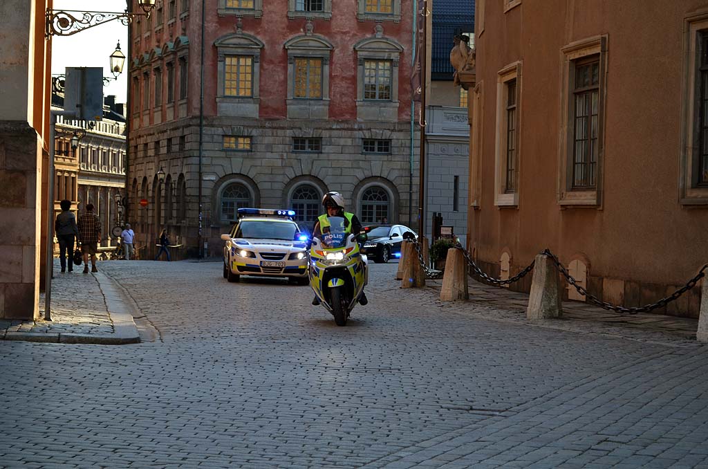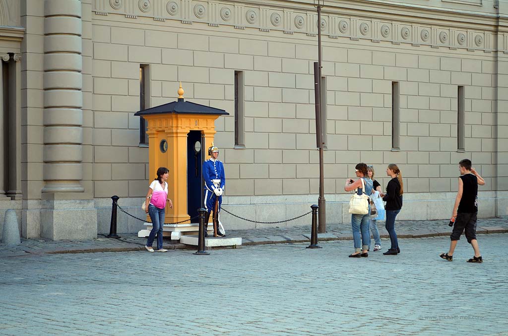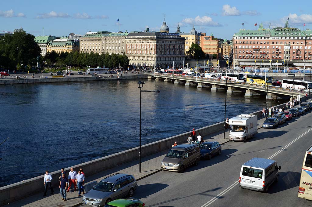 Wir besichtigten als Erstes Norrtälje und fuhren dann geradewegs nach Stockholm. Dort ließen wir uns auf dem Stellplatz nieder, der sich halb unter einer Brücke befindet und wir zogen zu Fuß los, die Stadt zu erkunden. Natürlich kenne ich auch Stockholm, aber dieses Mal hatten wir Zeit und wollten ganz gemütlich durch die Stadt ziehen. Wir gingen durch Gamla Stan, zum Stadthaus und zum Königsschloss, wo gerade die königliche Familie mit Polizeibegleitung das Haus verließ. In einem der Autos konnten wir gerade eben noch den Prinz Daniel von Schweden erkennen, der mit Kronprinzessin Victoria verheiratet ist.