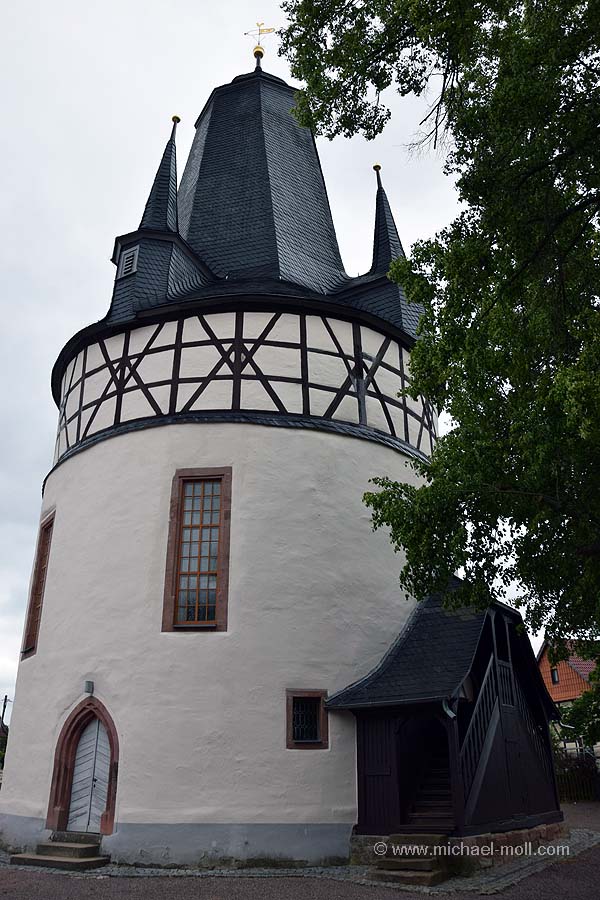 Wir fuhren frühmorgens in Essen los und erreichten nach nicht ganz vier Stunden die Region rund um Eisenach. Dort machten wir den ersten Stopp an der Rundkirche in Gerstungen, warfen einen Blick in das runde Gotteshaus und stoppten als nächstes am Rastplatz, der zu DDR-Zeiten der Grenzabfertigung diente. Ich finde, dass dieser Rastplatz noch immer irgendwie alt und rückständig wirkt. Das mag wohl an den Lichtmasten und dem Wachturm sein, die an die einstige Grenzzeit erinnern.
