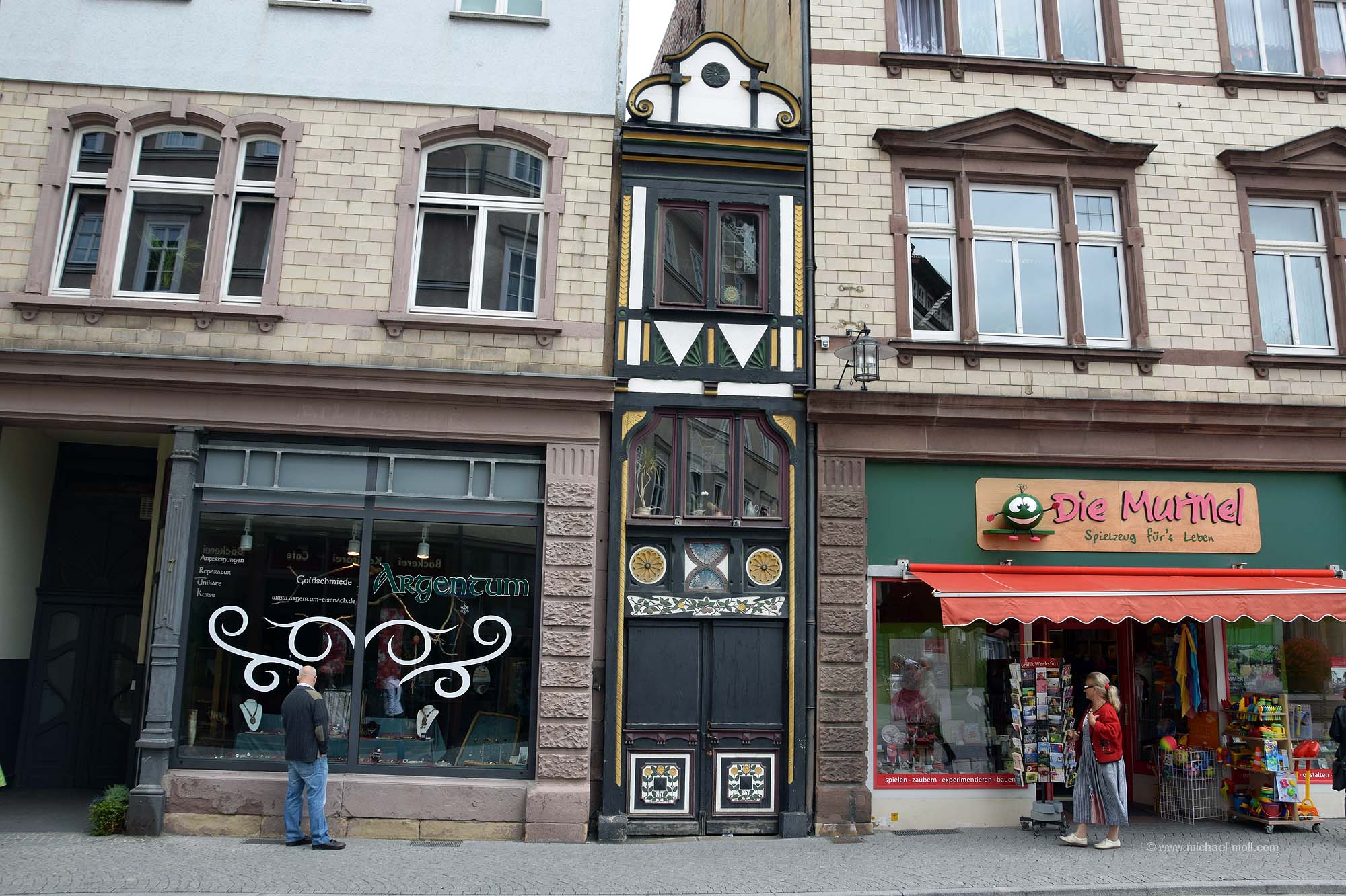 Später ging es nach Eisenach hinein, wo wir den Wohnmobilstellplatz ansteuerten, um diesen als Parkplatz nutzen zu können. Aber für 30 Minuten Parkzeit soll ich 2,50 Euro bezahlen? Ein Pkw-Fahrer muss für den gleichen Zeitraum nur 60 Cent in den Ticketautomaten einwerfen. Ein ganzer Tag kostet für ein Wohnmobil dahingegen nur 6 Euro. Nur habe ich nicht vor, einen Tag zu bleiben, aber ich sehe auch nicht ein, dass ich für einen kurzen Stadtbummel von etwas über einer Stunde 7,50 Euro zahlen sollte. Denn dann wäre das Tagesticket natürlich günstiger, aber immer noch teuer. Im Übrigen ist der Stellplatz zum Übernachten nicht wirklich einladend. Also stellten wir den Wagen schnell auf einen nahegelegenen Supermarktplatz, weil wir ohnehin noch ein wenig einkaufen wollten und zogen zügig durch die Innenstadt.