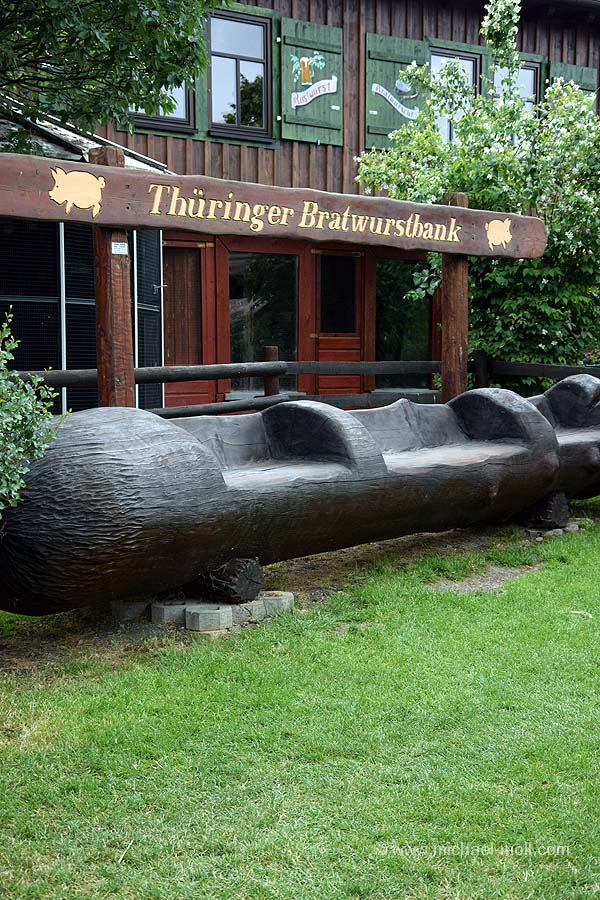 Ausklingen ließen wir den Tag auf dem Wohnmobilstellplatz in Tabarz, den wir schon von früheren Besuchen kannten, denn erst zwei Jahre zuvor waren wir auch mit dem Wohnmobil in Thüringen unterwegs, als ich in Zella-Mehlis eine Ausstellung meiner Bilder hatte. In Tabarz befindet sich auch die Märchenwiese mit Holzschnitzereien von zahlreichen Märchen, die ich als brutal bezeichnen würde. Altes Kindheitstrauma.