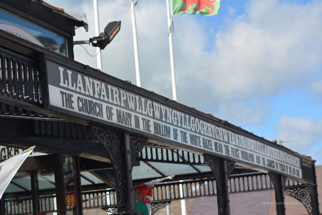 Wir fuhren weiter und erreichten bald die Brücke, die uns auf die Insel Anglesey bringen sollte. Gleich der erste Ort war unser nächstes Ziel mit dem unaussprechlichen Namen Llanfairpwllgwyngyllgogerychwyrndrobwllllantysiliogogogoch. Wie jeder Tourist, der in diesen Ort kommt, machten wir natürlich Fotos vom Ortsschild am Bahnhof und vom dem Souvenirladen neben der Touristinformation. Hier waren wir etwas irritiert, denn wir gingen zuerst nur in die Tourismusinformation, wo wir nach einem Pin und einem Autoaufkleber fragten. Man verneinte, so etwas hätte man nicht. Fanden wir schade. Wir wollten eigentlich schon zum Auto zurück als ich den Vorschlag machte, doch mal nebenan in den Laden hineinzugehen. Diesem sah man nicht auf dem ersten Blick an, dass er zahlreiche Andenken bereithielt, aber siehe da – jeden touristischen Schnickschnack konnte man dort kaufen. Das freute uns, doch wir fragten uns, warum man uns in der Touristeninformation nicht einfach sagte, dass wir nur einmal um die Ecke gehen müssten. Immerhin befand sich neben dem Mitarbeiter und den Andenken tatsächlich nur eine einzige Wand.