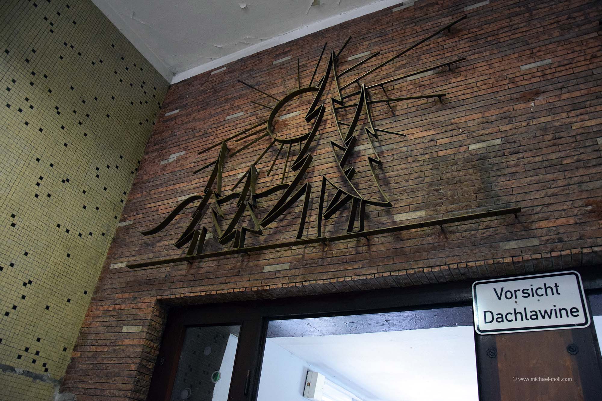 Dann trat ich ein, wo mir über dem Durchgang zum zweiten Bahnsteig erstmal dieser alte Wandschmuck auffiel.