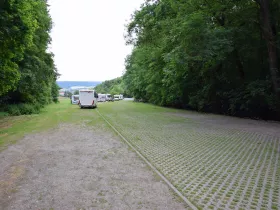 Aber auf jeden Fall ist der Platz schön ruhig, weil es sich um eine Sackgasse handelt. Auf dem Foto stehe ich im hintersten Eck und blicke zurück. Da kommt also hinter meinem Standort nur noch Wiese. Nur gleich nebenan, aber nicht sichtbar, verläuft die Bundesstraße. So viel Verkehr ist da allerdings nicht.