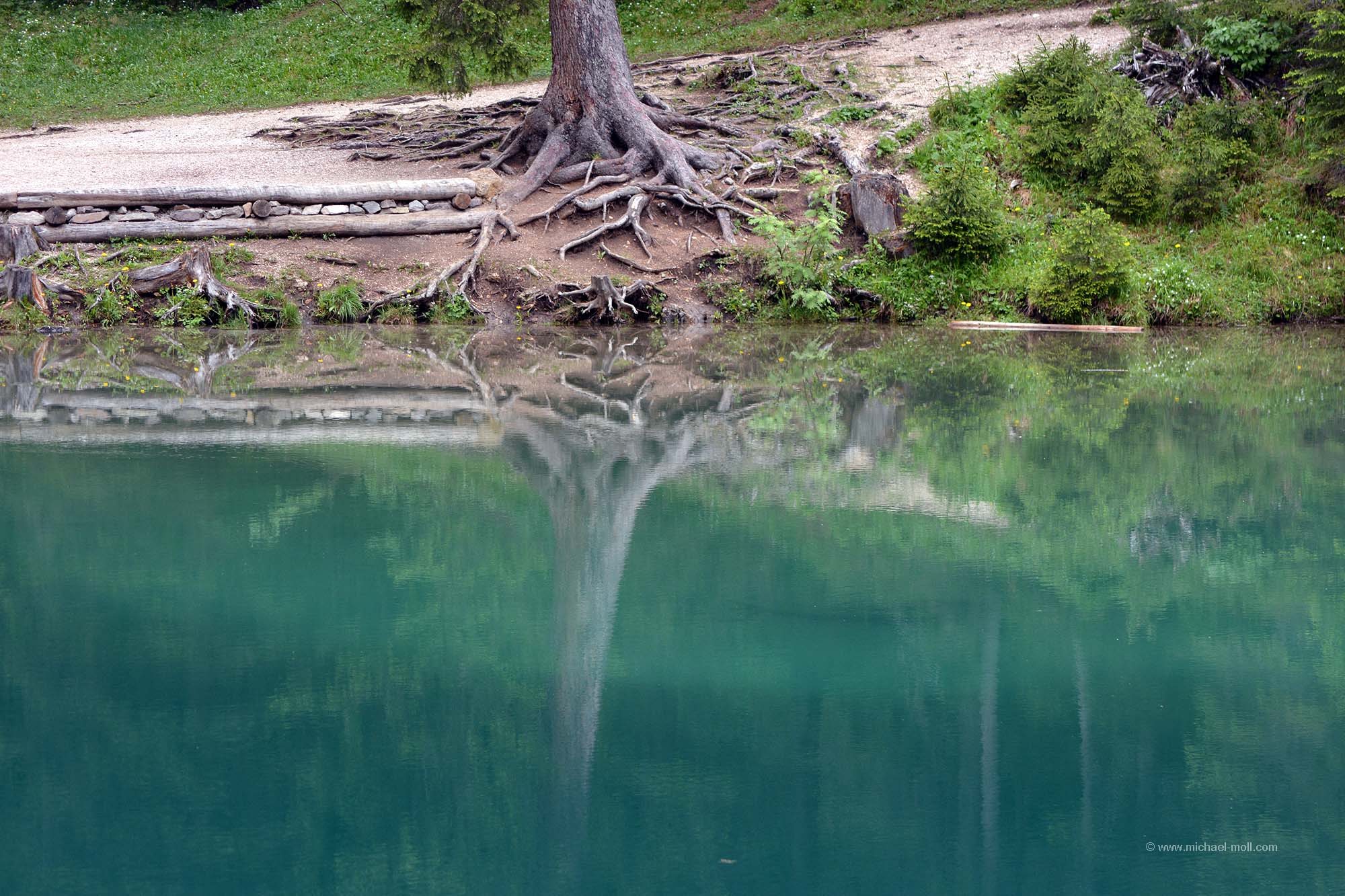 Verlaufen kann man sich auch nicht. Erstens es nur diesen einen Weg, zweitens ist er gut erkennbar, drittens gibt es auf der einen Wegseite nur den See und auf der anderen Seite steil aufragende Berge. Und viertens ist es an hochsommerlichen Sonntagnachmittagen so richtig voll. Vermute ich. Wir waren zwar nicht an einem hochsommerlichen Sonntagnachmittag vor Ort, aber dennoch war es schon ganz gut gefüllt. Alleine war man also nicht.