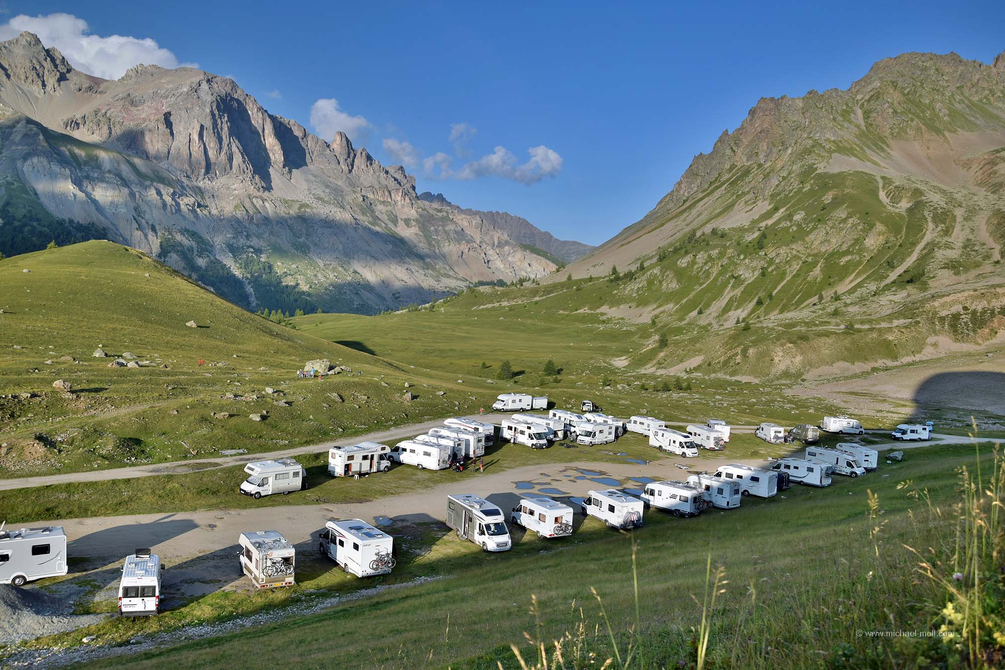 Außerdem konnte man - zumindest inoffiziell - dort oben mit dem Wohnmobil nächtigen. Ganz klasse ist aber, dass man von dort noch eine "Etage" weiter nach oben fahren kann. Von der Passhöhe zweigt nämlich noch eine weitere Straße nach Norden ab, die auf den Col du Galibier führt. Aber dazu später mehr.