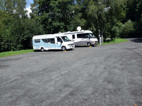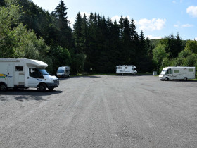 Der Parkplatz bzw. Stellplatz ist auch gleichzeitig Buswendeplatz. Deswegen der Linienbus im Hintergrund.