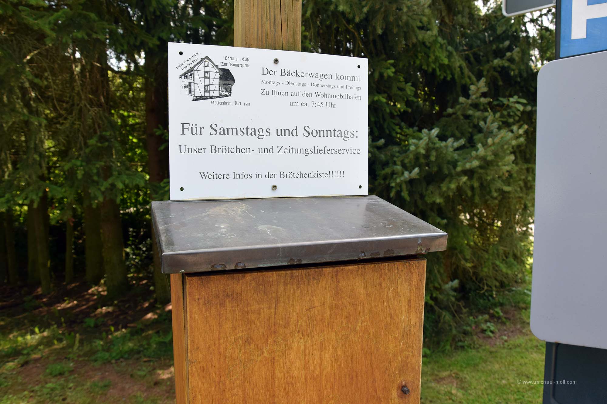 Der Platz ist kostenpflichtig, bietet aber einen Brötchenservice, Strom und Ver- und Entsorgung. Außerdem erhält man in der Touristeninformation als Wohnmobilgast eine Postkarte geschenkt. Ist doch auch mal nett.
