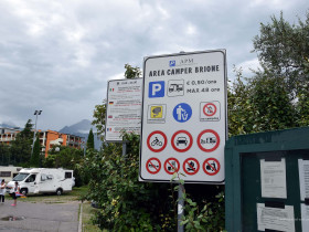 Auch am nördlichen Ufer des Gardasees existiert ein Wohnmobilstellplatz. Genauer gesagt in der Ortschaft Riva del Garda. Er ist mit einer Schranke versehen und befindet sich ein wenig am Ortsrand neben einer Wohnsiedlung. Den Gardasee sieht man von dort definitiv nicht. Zu Fuß sind es rund 200 Meter über die Hauptstraße bis zum Yachthafen. Ins Zentrum von Riva del Garda ist es ein deutliches Stück weiter, aber entlang des Ufers durch einen netten Park gut zu meistern.