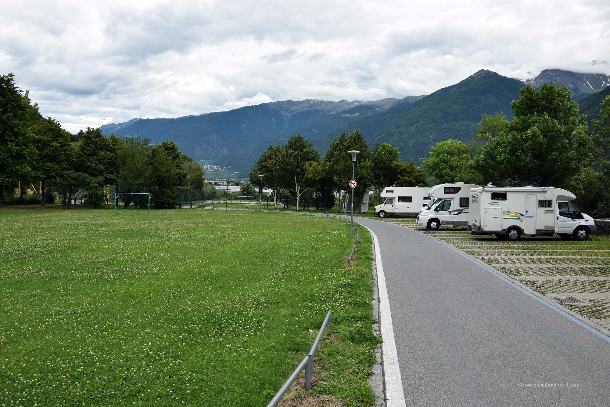 In Schlanders in Südtirol gibt es auch einen netten Wohnmobilstellplatz. Er befindet sich etwas oberhalb des Ortes und bietet ausreichend Platz auf Rasengittersteinen. Von dort sind es weniger als zehn Minuten in den Ort hinein.