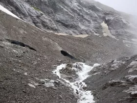 Toll ist dort auf jeden Fall der Steingletscher. Nur sehen müsste man ihn dann können. Das Wetter war so trübe, dass wir ihn erst erkannten, als wir direkt davor standen.