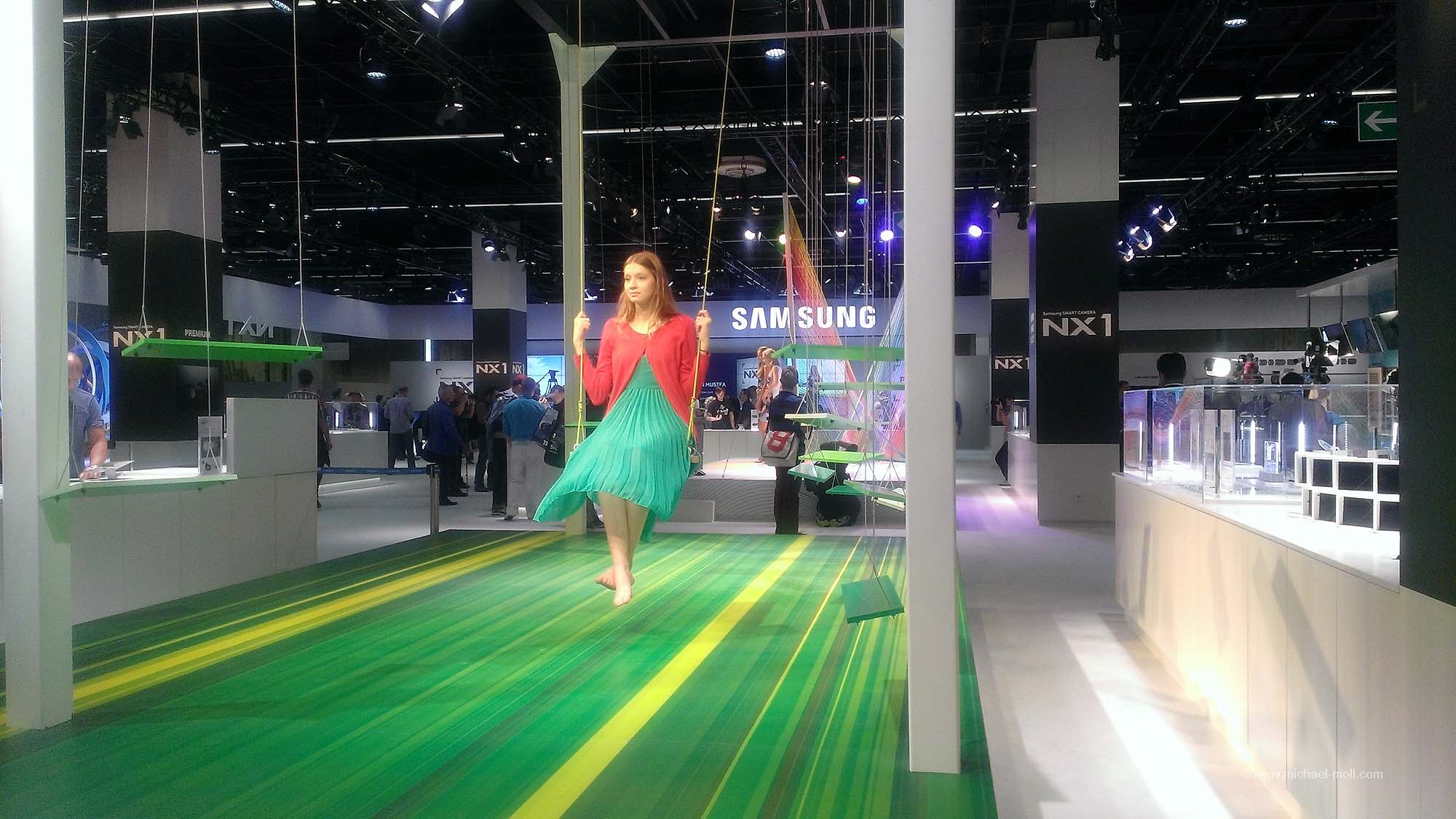 Gleich in der ersten Halle wurde ich von Google begrüßt, die auch einen Stand dort hatten. Hintergrund war aber nicht die Suchmaschine, sondern GoogleMaps und vor allen Dingen die Aufnahmen von Streetview. Witzig: Man hatte die Gelegenheit, ein Smartphone in einem kleinen Pappkarton als Einheit für Virtual Reality zu benutzen. Zu sehen gab es dann Streetview-Aufnahmen, so als würde man selber auf der Straße stehen. Hat man sich umgedreht, so drehte man sich auch in dieser virtuellen Umgebung.