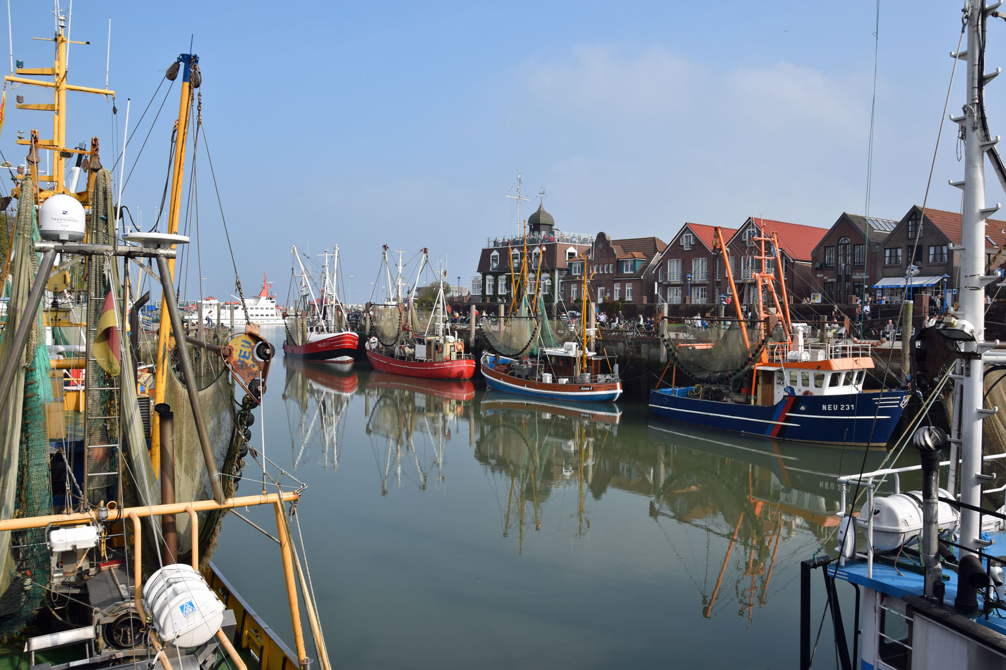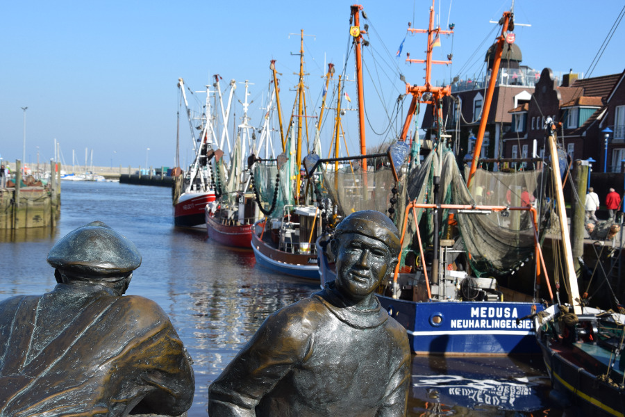 Hier ein Bild von Neuharlingersiel, wo ich über den Deich hingewandert bin (sieben Kilometer je Strecke, glaube ich), morgen mehr: