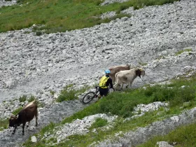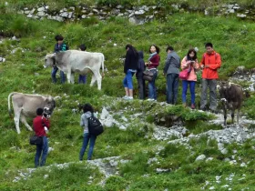 Mag sein, dass die Frage eine typische Großstädterfrage ist, aber ein Vorfall in diesem Jahr hat mich ein wenig verunsichert. Im Stubaital wurde in diesem Jahr eine Wanderin von mehreren Kühen getötet, als sich alle den Weg teilen mussten. Mein letzter Wissensstand ist, dass die Frau einen Hund dabei hatte, auf den die Kühe reagierten.