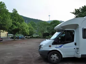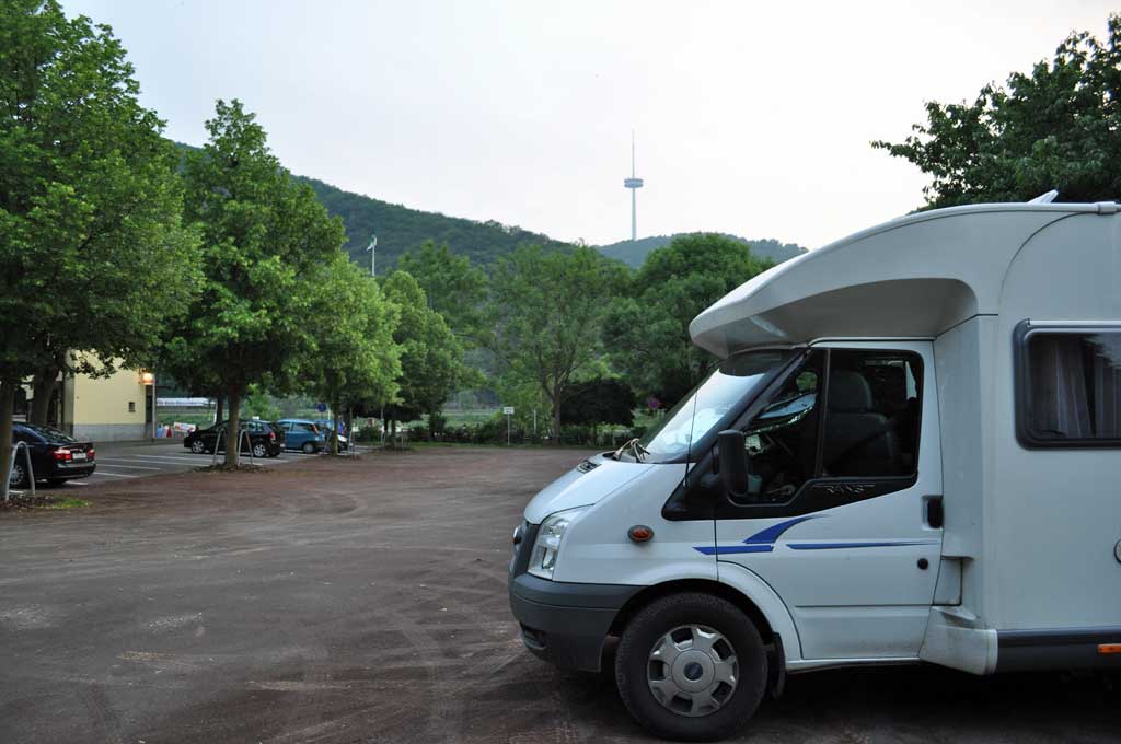 In Lahnstein gibt es einen kleinen, aber feinen Stellplatz. Er befindet sich am Ende der Blücherstraße auf der rechten Seite, genau gegenüber vom dortigen Schwimmbad (oder war es nur eine Turnhalle? Ich weiß es nicht genau). Auf jeden Fall sind es nur 20 Meter zum Rhein und wenn man dort nach links geht, erreicht man nach weniger als fünf Minuten die Lahnmündung in den Rhein und sieht gegenüber schön auf Schloss Stolzenfels. Etwas weiter an der Lahn entlang sieht man auch Burg Lahneck und kommt recht schnell in das Zentrum von Lahnstein. Lässt sich auch gut mit dem Fahrrad machen. Der Stellplatz selbst ist zwar unbewacht und nur ein Parkplatz, dafür aber kostenlos.