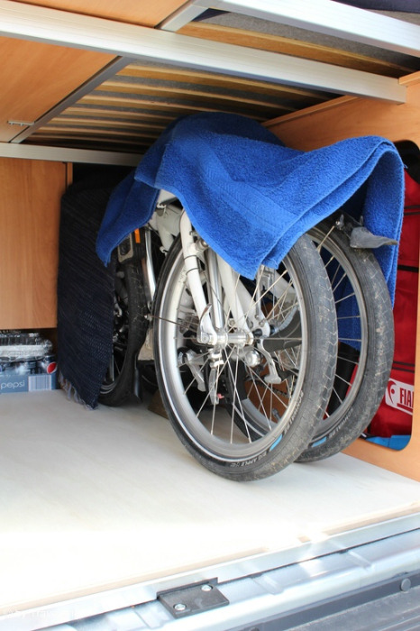 Noch habe ich ihn nicht, den T5 – aber bald wird es soweit sein. Aus persönlichen Gründen möchte ich, dass er von außen möglichst „zivil“ aussieht. Daher will ich, wenn es irgendwie geht, auf eine Fahrradhalterung verzichten. Nicht jedoch auf ein Fahrrad – und so habe ich an ein Faltrad gedacht.