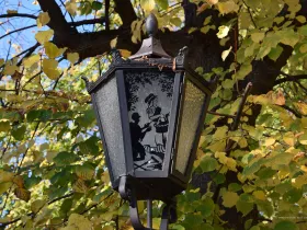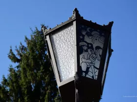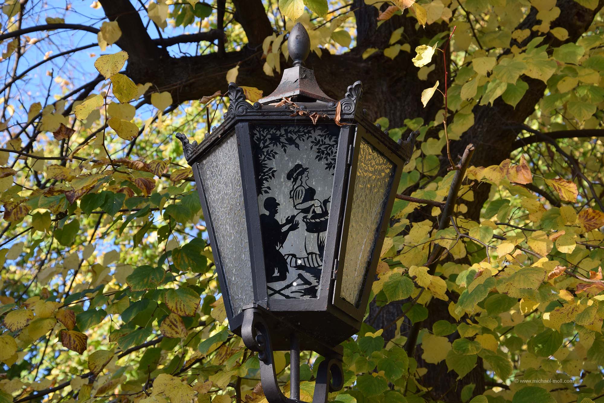 Na ja, und in diesem kleinen Örtchen gibt es mehrere Gassen mit Laternen, bei denen man ein herkömmliches Glas ausgetauscht hat. Zu sehen ist jetzt an jeder Laterne ein anderer Scherenschnitt. Mehrere Scherenschnitte zusammen ergeben eine Geschichte. Fünf Sagen sind es an der Zahl, die man in Schwerte rund um den Wuckenhof und an der Kirche bzw. am Marktplatz abschreiten kann:
