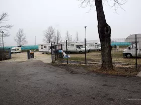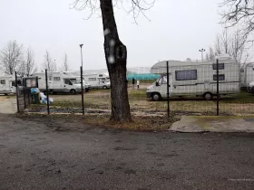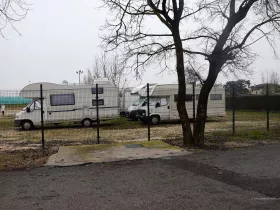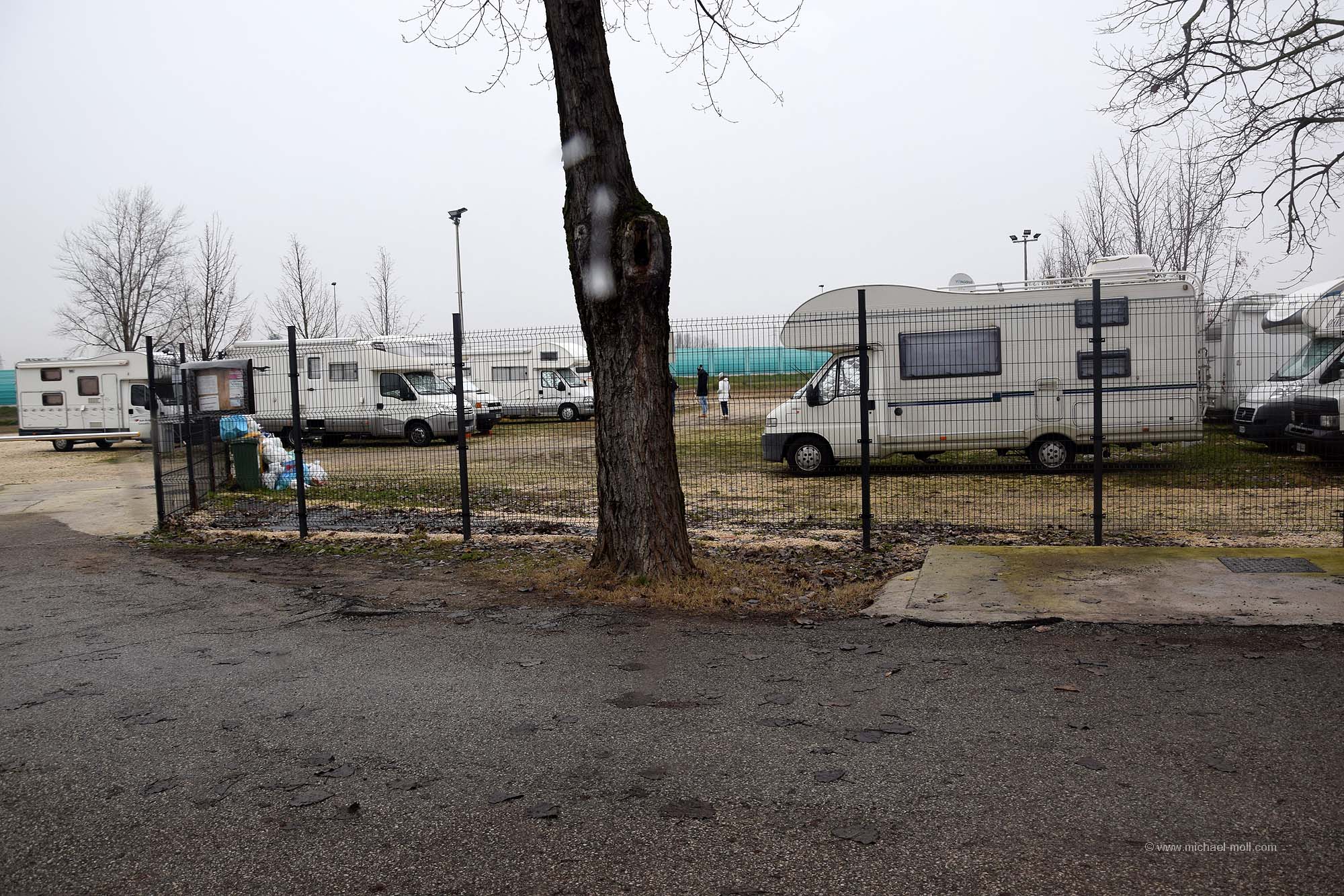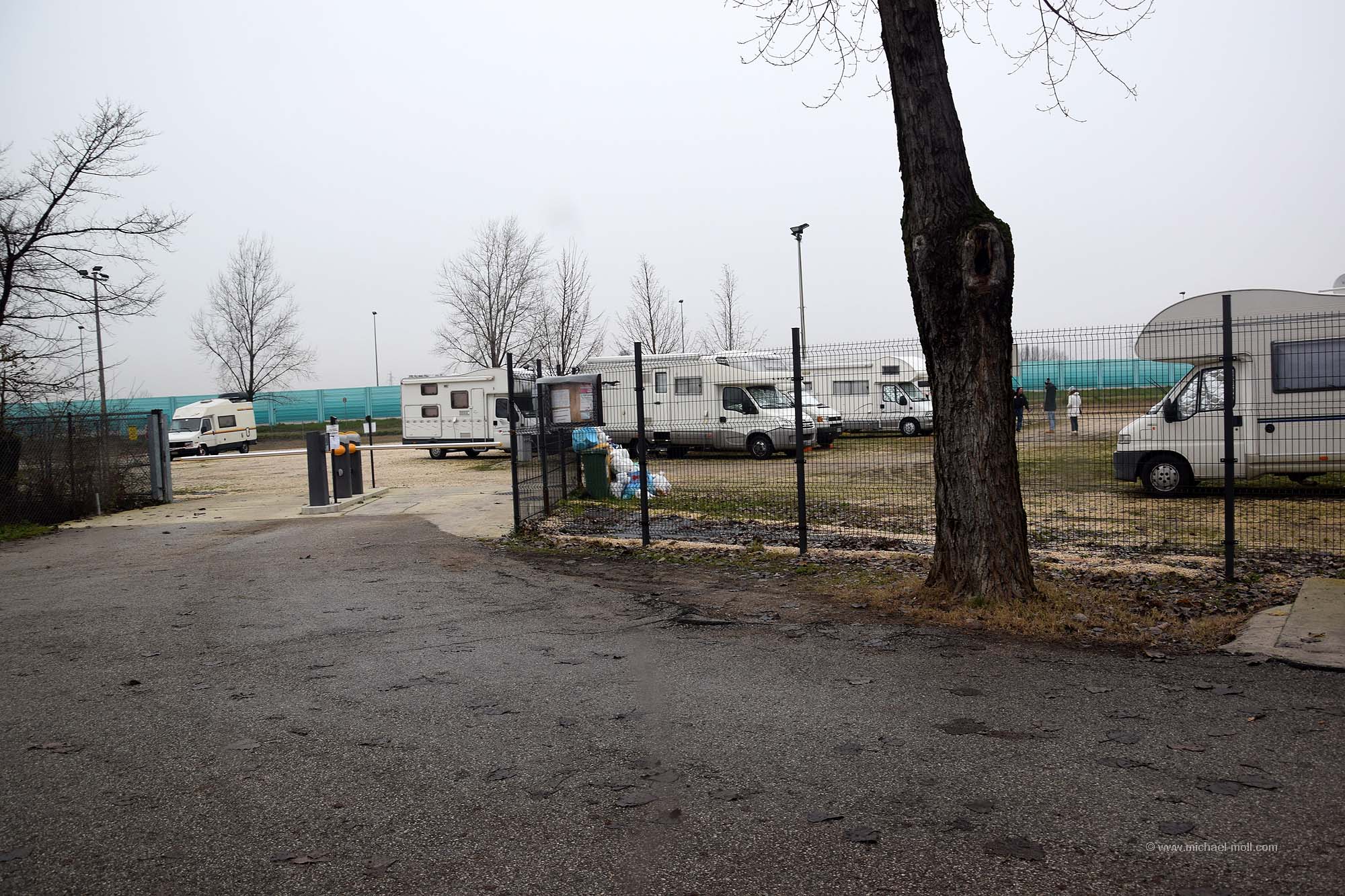 Für Venedig gibt es mehrere Möglichkeiten, mit dem Wohnmobil anzureisen und vor allen Dingen, darin zu übernachten. So gibt es einen Stellplatz nordöstlich der Lagune bei Punta Sabioni und einen am Parkhaus neben dem Bahnhof, aber eben auch einen Stellplatz westlich der Stadt bei Maghera. Von dort soll es recht einfach sein, mit öffentlichen Verkehrsmitteln den Bahnhof von Venedig zu erreichen. Wir haben ihn uns angeschaut und ich muss ehrlich gestehen, dass ich mich gerade mal zu diesen Bildern durchringen konnte. Danach fuhren wir weiter und platzierten unser Wohnmobil lieber auf den Campingplatz Village Jolly. Wir wollten Venedig in Ruhe besuchen und uns keine Sorgen um das Auto machen. Daher schied der unbewachte Stellplatz am Bahnhof für uns aus.
