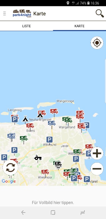 • Mir gefällt die holländische Stellplatz-App CAMPERCONTACT auch sehr gut. Hier empfiehlt sich die kostenpflichtige Version, weil sie die Möglichkeit bietet die Karten und Stellplatzlisten offline zu nutzen.