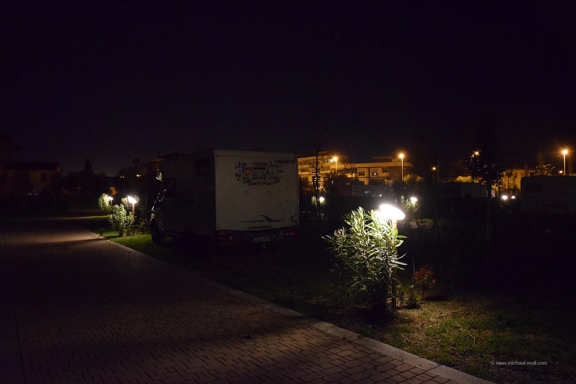 Wie auch immer, den Platz fand ich klasse, zumal er eben ein sicherer Abstellplatz für das Wohnmobil ist. Und außerdem ist er in der Nacht relativ ruhig. Dummerweise habe ich nur versäumt, Bilder zu machen. Das einzige Foto entstand am Abend, als wir vom Altstadtbesuch zurück kamen: