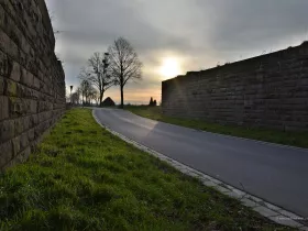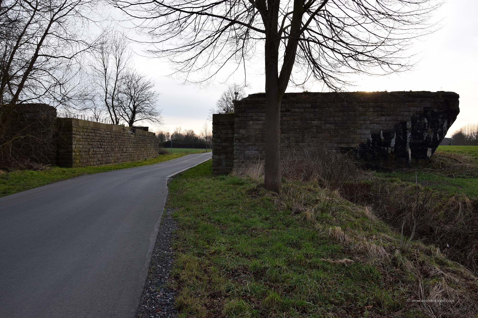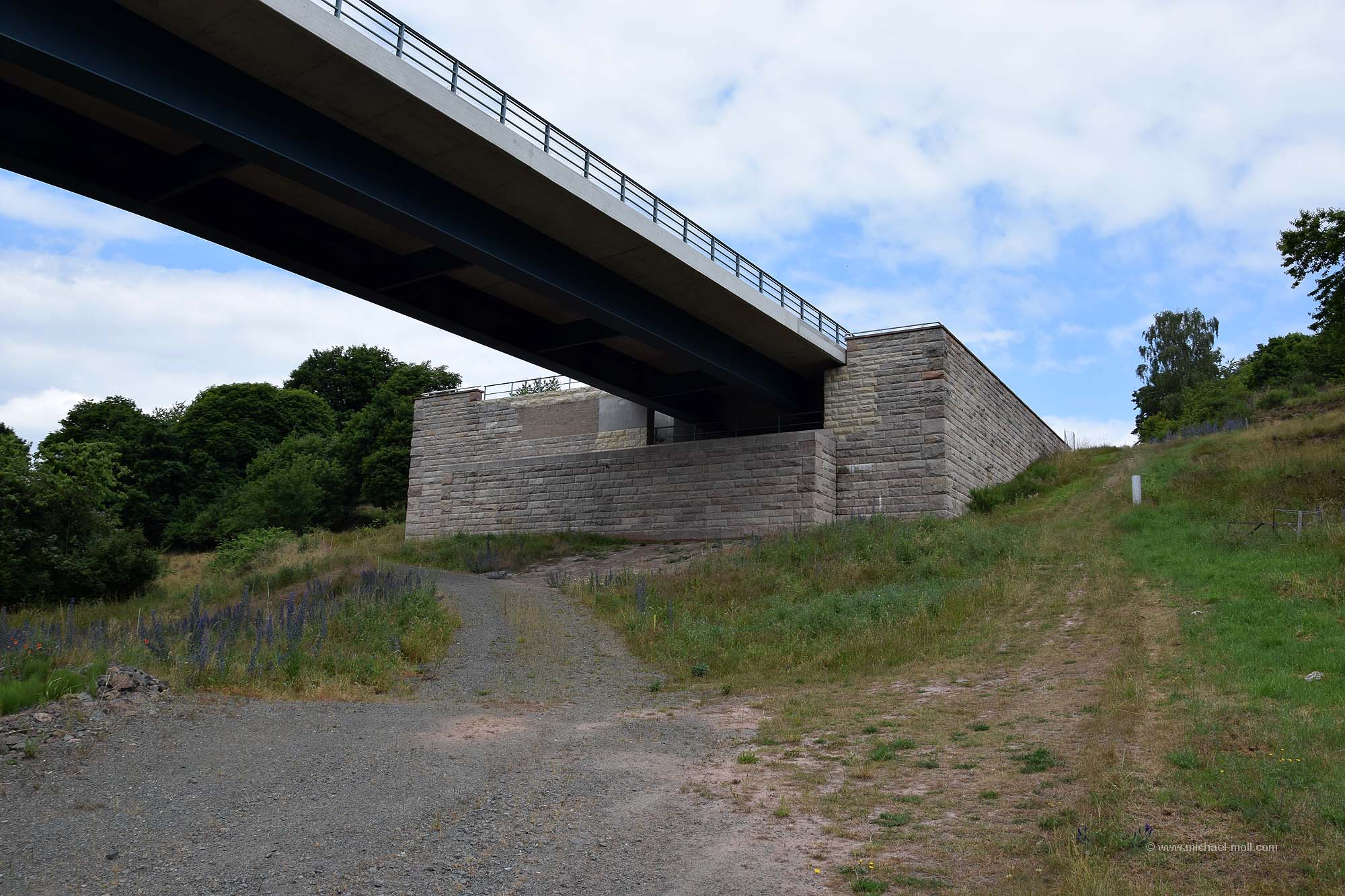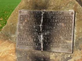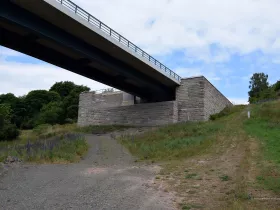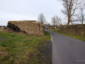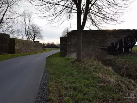 Zum damaligen Zeitpunkt hat man nicht nur geplant, sondern auch schon mit einigen Bauwerken begonnen, die noch heute erhalten geblieben und als Denkmal geschützt sind. Dazu gehört zum Beispiel auch dieses Widerlager einer der geplanten Autobahnbrücken: