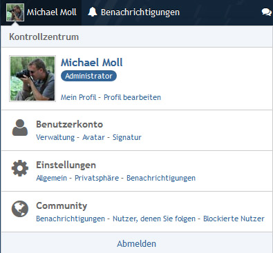 Hier kannst du alle Einstellungen vornehmen, die dir für deinen Account hier im Forum wichtig sind. So ziemlich alles ist selbsterklärend oder wird dir erklärt, wenn du auf den entsprechenden Link klickst. So kannst du dir einstellen, ob und wann du Benachrichtigungen erhalten willst, dein Avatar hochladen und natürlich deine Privatsphären-Einstellungen vornehmen. Ganz unten kannst du dich wieder vom Forum abmelden, wenn du einen fremden Rechner benutzt.