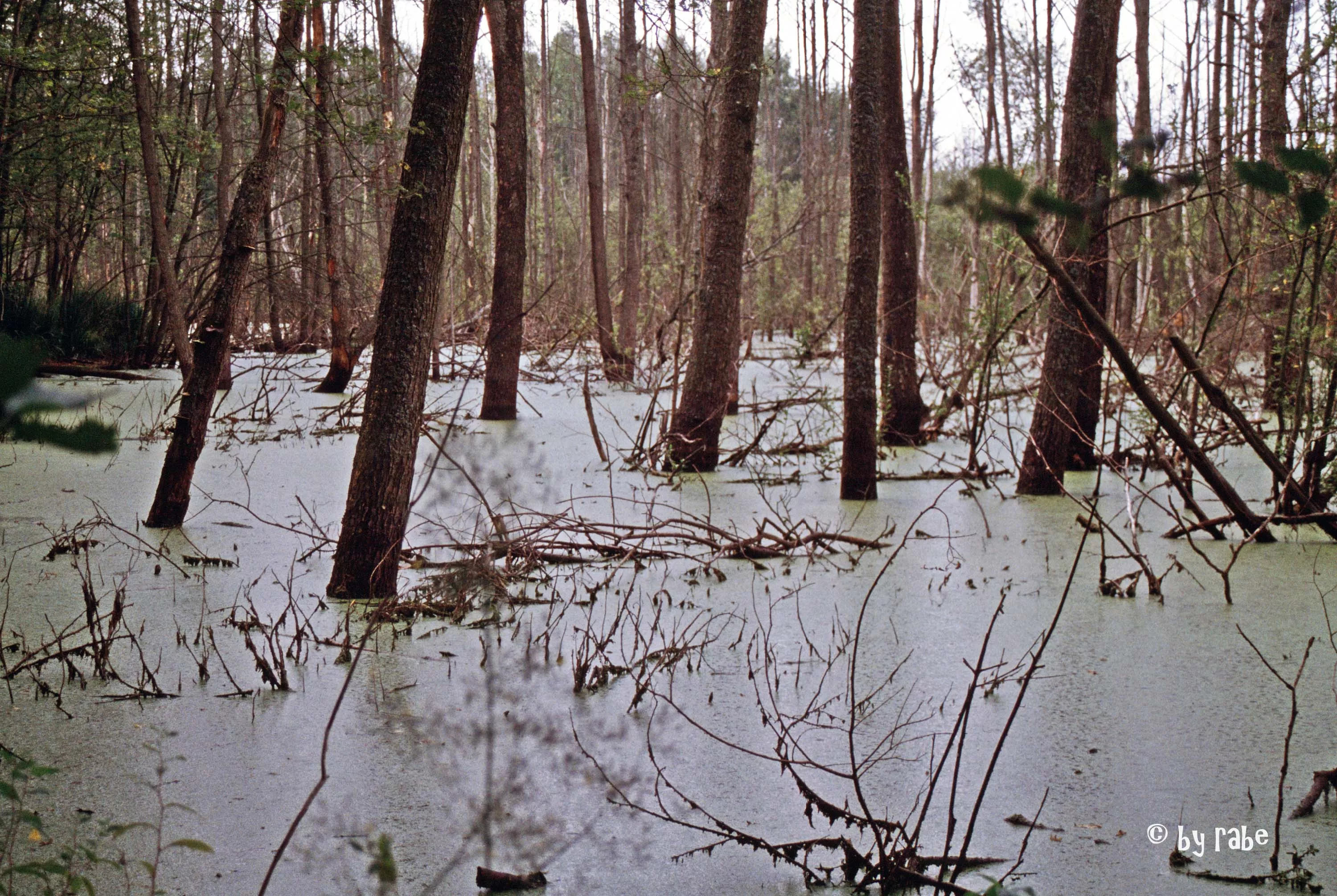Nach diesem ersten Drittel, dass wir ja überwiegend paddelnd und nur mit dem Nötigsten versehen auf dem Wasser verbracht hatten, legten wir ein paar Tage Paddelpause ein und erkundeten jetzt mit unseren Fahrrädern die Landschaft in diesem Teil Polens. Häufig führten uns unsere Radrouten dabei auch durch Sumpfgebiete, die jedoch allesamt ziemlich trostlos aussahen. Der Gedanke, von den Wegen abzuweichen, kommt einem dabei überhaupt nicht.