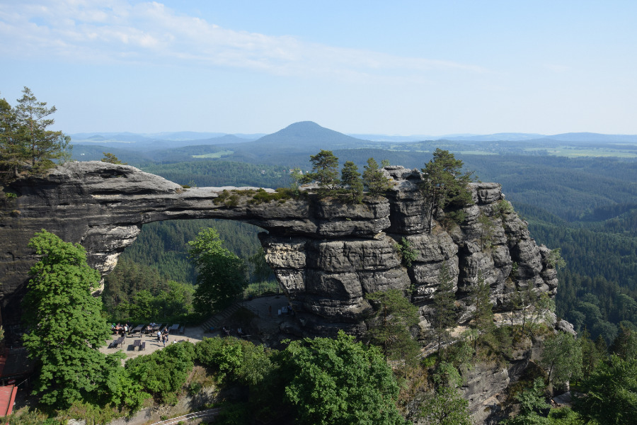 Analog zum Thread Sächsische Schweiz starte ich hier mal das Thema zur Böhmischen Schweiz. Beide Regionen liegen ja direkt nebeneinander und sind ja eigentlich nur politisch voneinander getrennt. Wer also in der Sächsischen Schweiz unterwegs ist, sollte auch einen Blick über die Grenze werfen. Gleich an der ersten Straße, die von der Elbe wegführt, geht es auf einem Wanderweg hinauf zum Wahrzeichen der Böhmischen Schweiz, dem Prebischtor: