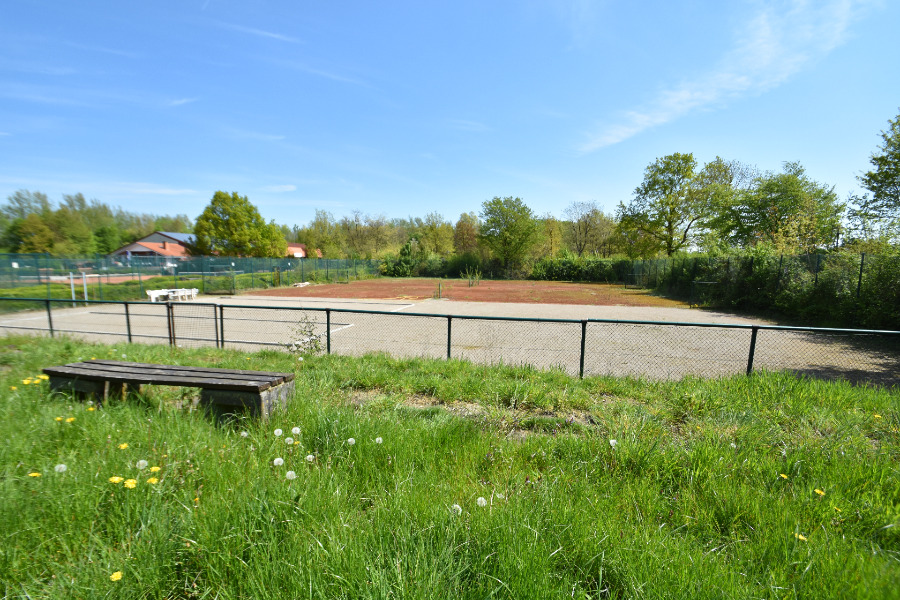 Der Zaun ganz links zu den anderen Tennisplätzen bekommt noch einen Sichtschutz und eine Hecke. Die andere Umzäunung wird komplett entfernt (braucht noch jemand einen Maschendrahtzaun?)