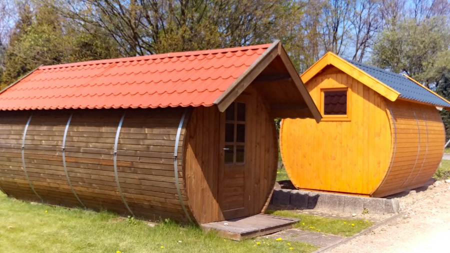 - gestern bestellten wir ein Fasshaus wie dieses hier (wird die Anmeldung/Rezeption, wie auchimmer):