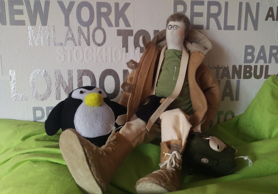 Ich wollte das einfach mal zeigen. Und zwar gibt es in Polen eine Kunsthandwerkerin, die sich auf das Nähen von Puppen/Figuren spezalisiert hat. Vor einigen Wochen habe ich eine Puppe in Auftrag gegeben, die ein wenig an mich erinnern soll. Ich finde, mit der Outdoorkleidung, einem Rucksack, dem kleinen Stoffpinguin und der Kamera hat sie das ganz gut umgesetzt. Ich werde bei schönem Wetter demnächst mal raus gehen und ein paar nette Bilder machen. Dann erkennt man auch besser, wie liebevoll sie die kleinen Details umgesetzt hat. Hier mal ein Bild auf die Schnelle: