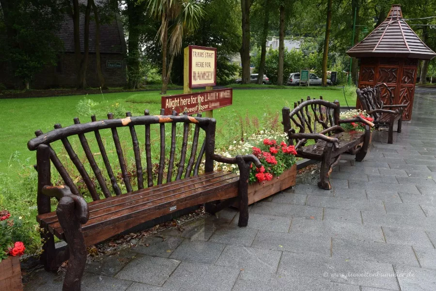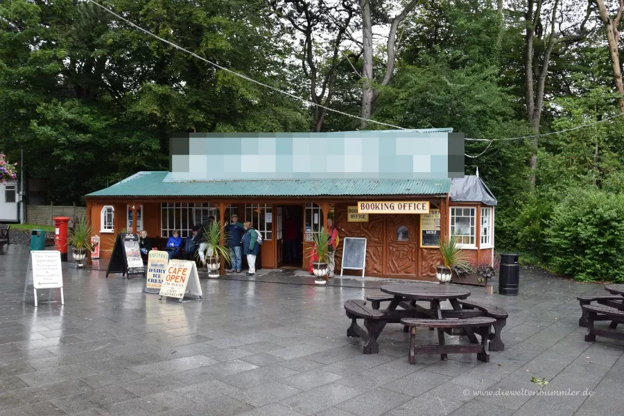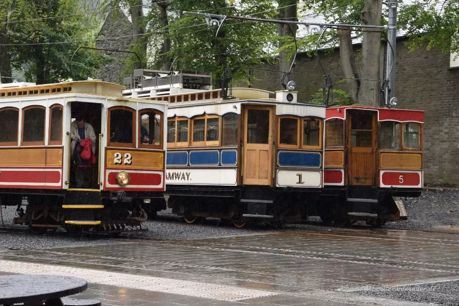 Wir sehen hier den Bahnhof von Laxey, an der Manx Electric Railway. Wie der Name der Linie schon sagt, befinden wir uns auf der Insel Man. Angesichts der diversen Gleise würde ich diese Station durchaus als Bahnhof bezeichnen.