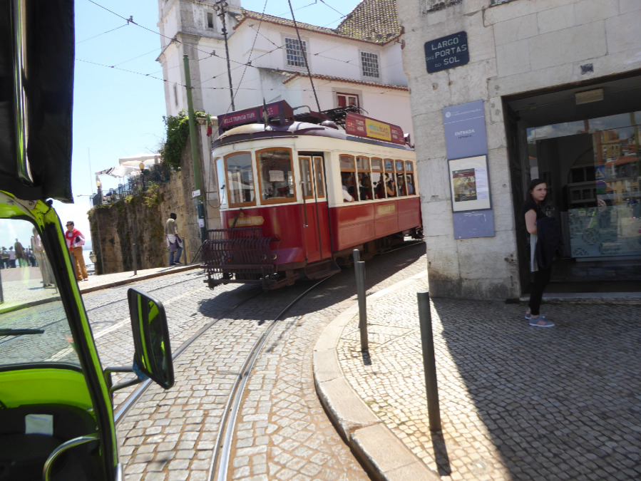 Lissabon und die alte Strassenbahn ..... und die 2 Türen, eine schmal und die andere breit je nach den Finanzen durfte man dieses Gebäude betreten, Arm schmale Tür, Reich breite Tür, Sage oder Warheit konnte ich nicht heraus finden