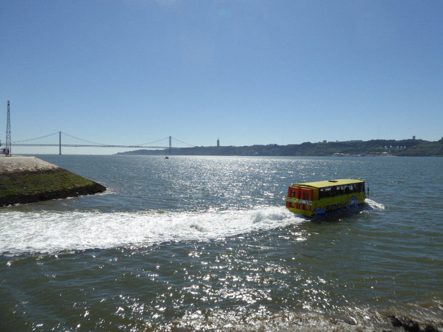Amphibienfahrzeut und Denkmal in Belem ......ende April