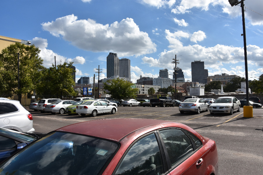 Der Parkplatz mit Blick auf die Skyline von New Orleans