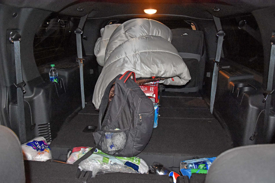 Ich wollte euch endlich mal zeigen, wie es aussah, als wir auf unserer USA-Tour auch mal im Mietwagen schliefen. Wir hatten ja bereits Schlafsäcke an Bord, weil gleich das erste Motel eine ziemliche Absteige war. Und da wir einen ziemlich großen SUV fuhren, hatten wir genug Platz für unser Gepäck und auch, um uns ausstrecken zu können. Die beiden umgelegten Rückbänke waren nämlich schon eben und einen einzigen Zwischenraum füllten mit Flaschen und dergleichen.