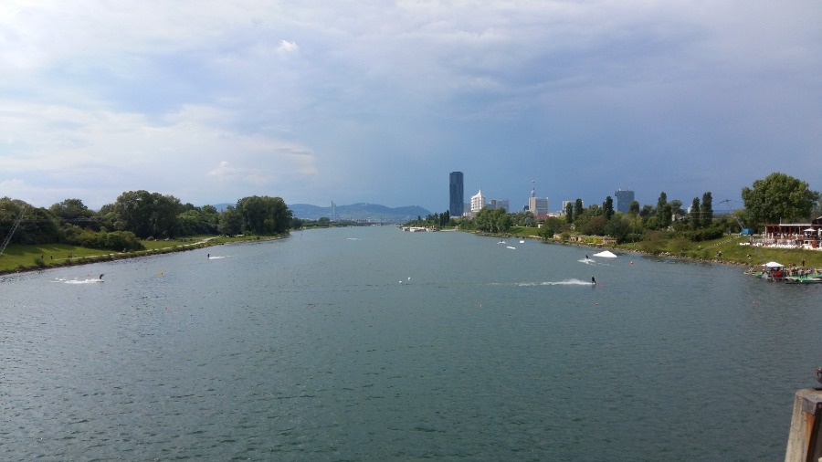 Wien mit der DonauInsel, Riesenrad und dem Wiener Nachmacht