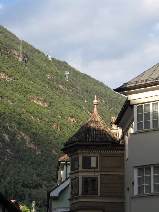 Ja, wir sind diese Woche tatsächlich in Südtirol. Dies ist der Bozener Bahnhof. Bei dem Bild von gestern wühle ich noch - ich tippe auf die Kohlerer Seilbahn, könnte aber auch eine der beiden anderen Bozener Seilbahnen sein.