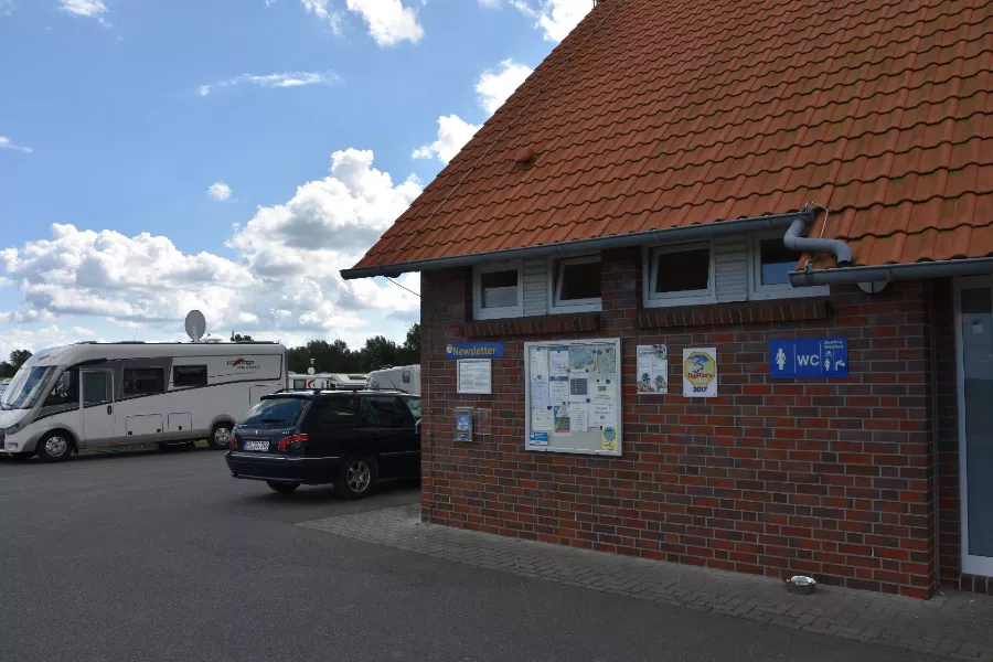 Der Wohnmobilstellplatz in Hooksiel ist ziemlich groß und liegt in Küstennähe. Er befindet sich zwar zwischen Küste und Deich, aber ist noch einige Meter durch das Marschland vom Meer entfernt. Uns war der Platz entschieden zu groß und irgendwie gefiel uns auch das Drumherum nicht so sehr. Aber das waren einfach unsere Eindrücke an dem Tag. Es gibt ein großes Sanitärgebäude, in dem es eigentlich an nichts mangelt.