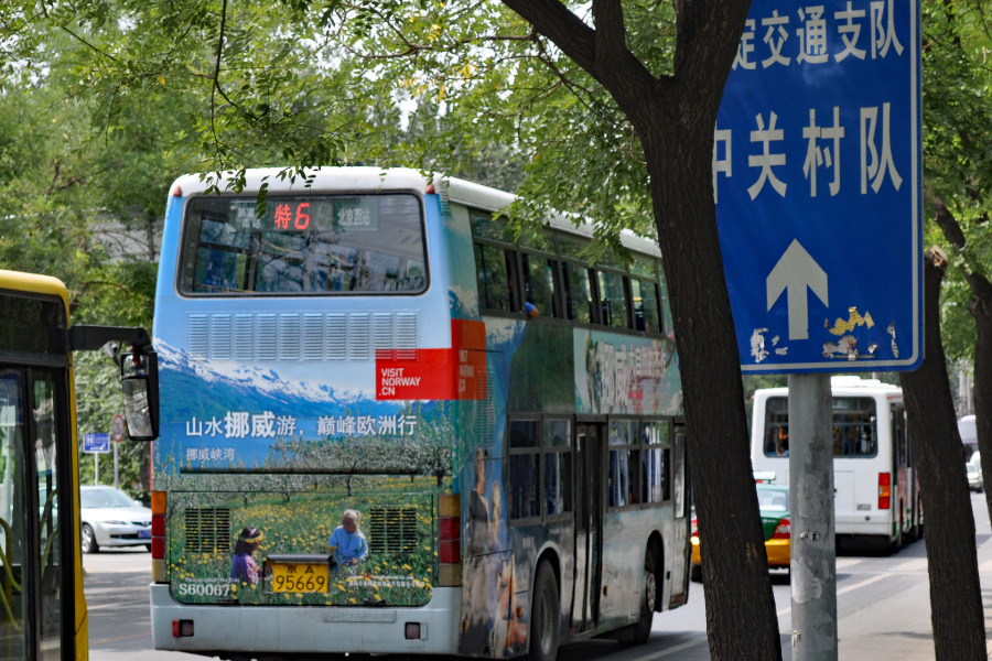 Ich muss euch mal zwei Bilder zeigen, die ich in Peking und in New York gemacht habe. Ich musste an beiden Orten ein wenig schmunzeln, weil es irgendwie skurril und unpassend wirkte. Einmal die Aufnahme von einem Bus in Peking: