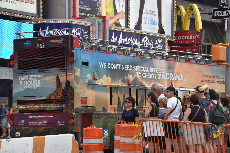 Diesen Schnappschuss habe ich nicht irgendwo in New York gemacht, sondern ausgerechnet am Times Square, dem wohl lautesten und vollsten Punkt in der Stadt. Und ausgerechnet da fährt der Bus mit dieser Werbung an mir vorbei.