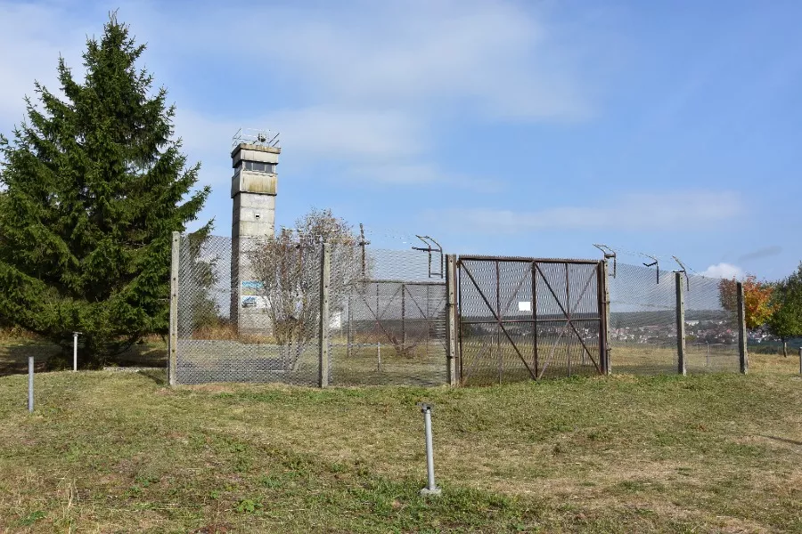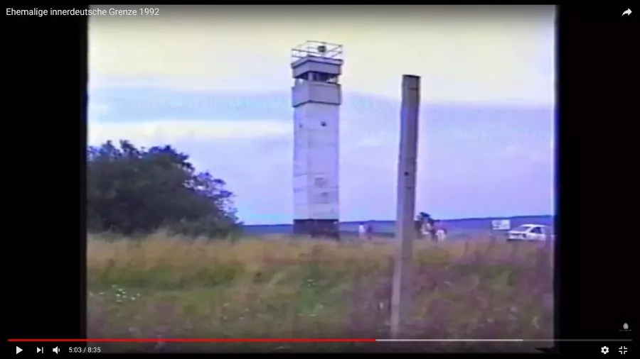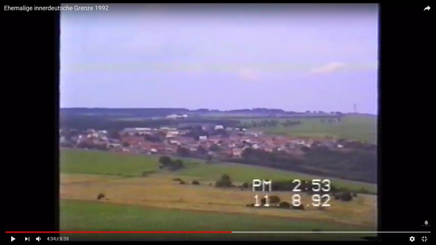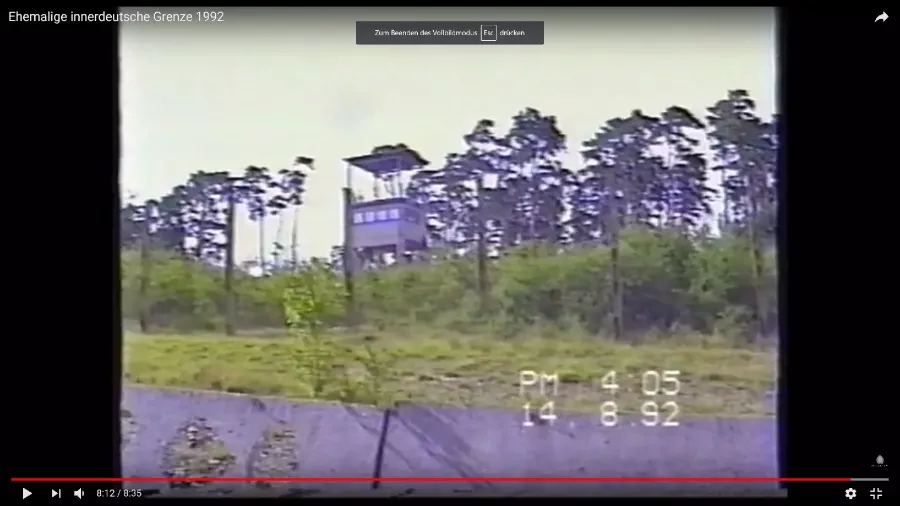Mein damaliger Kumpel und ich sind damals tatsächlich ein Stück auf dem Kolonnenweg gefahren und haben uns die Überreste der Grenze und die Wachtürme angeschaut. Woran ich mich überhaupt nicht mehr erinnern konnte, es aber ziemlich interessant finde, ist das Schild bei 0:17. Ich habe das Video dort extra verlangsamt und kurz angehalten, damit man es deutlich lesen kann. Es ist ein klassisches Schild, das man an den Staatengrenzen findet. Nur eben mit der Aufschrift "Thüringen".