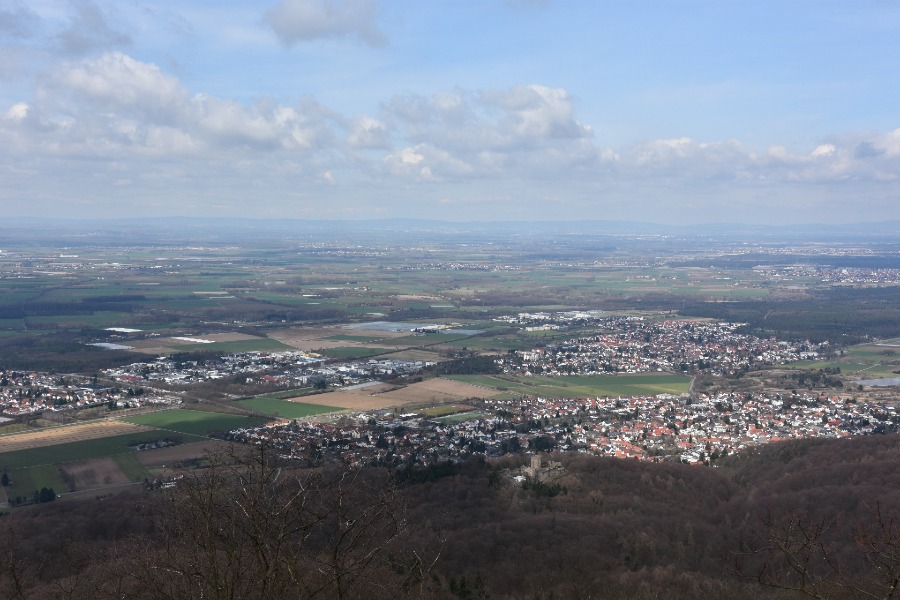 Und dann fuhren wir rüber zum Odenwald. Aussicht vom Melibokus auf die Rheinebene: