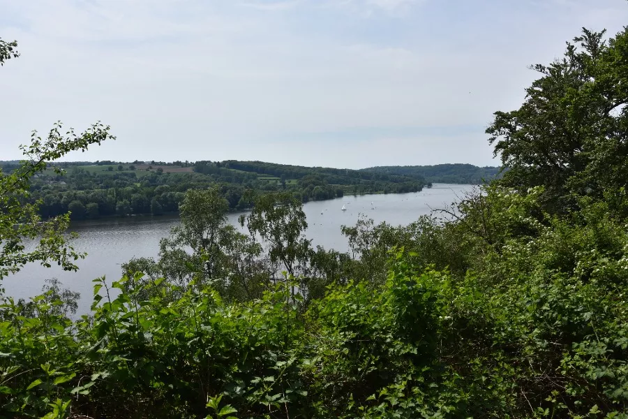 Auf der Nordseite des Sees wandert man überwiegend durch Wälder auf den Ruhrhöhen. Hier hat man immer wieder tolle Ausblicke auf den Baldeneysee.