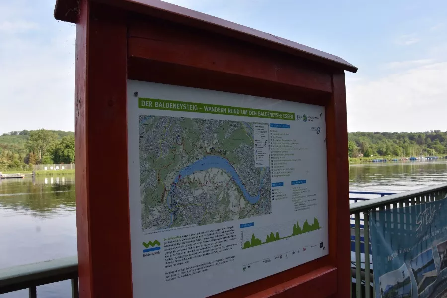 Seit dem letzten Jahr gibt es nun auch einen Wanderweg auf den Höhen rund um den Baldeneysee. Er wurde groß angekündigt und feierlich eingeweiht und nennt sich Baldeneysteig. Seine Länge beläuft sich offiziell auf 26,7 km. Ich habe aber schon von anderen Leuten gehört, dass man mit dieser Kilometerangabe nicht genau hinkommt. Letztendlich wurden es auch bei uns 29,1 km. Wir starteten morgens um kurz nach 9 und waren gegen 17.15 Uhr fertig.
