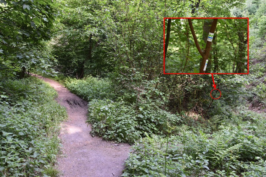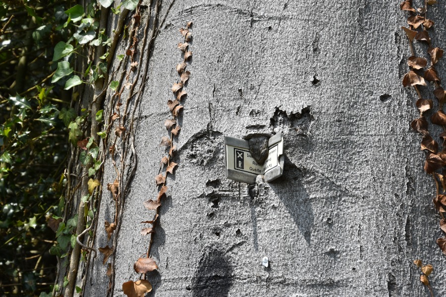 Die Tour war echt schön, doch die Beschilderung ließ im Laufe der Zeit immer zu wünschen übrig. Mein Eindruck war, dass man hier einen äußerst kostengünstigen Weg ausgeschildert hat. An einigen Stellen, es dürften 7 oder Orte gewesen sein, gab es eine Infotafel mit Übersichtskarte. Aber die Wegweisung bestand lediglich aus kleinen, quadratischen Hinweisen. Mal waren es laminierte Täfelchen, mal Aufkleber. Es wurde aber nirgendwo ein einziger Pfahl in den Boden gerammt. Vielmehr hat man die Täfelchen an bereits vorhandenen Punkten angebracht. Das war nicht immer sinnvoll.