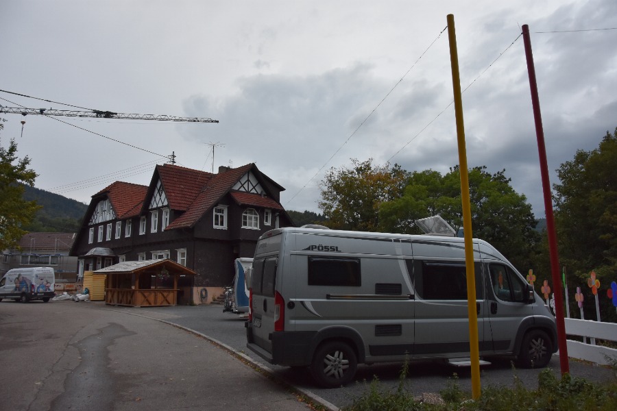In Forbach gibt es einen sehr kleinen und einfachen Wohnmobilstellplatz, der aber extrem freundlich betrieben wird. Es handelt sich um vier einfach Parkplätze auf dem Grundstück eines Malermeisters. Begrüßt wurden wir nach unserer Ankunft von dem ungefähr zehnjährigen Sohn, der gleich mal die Preise nannte und uns erklärte, wie wir in den Ort und zu einem Supermarkt kommen. Kurz darauf trafen wir dann auch den Vater, der uns den Anmeldeschein gab und meinte, den können wir ausfüllen, wann wir wollen. Wir müssten uns keinen Stress machen. Sehr nett. Aber das Beste: Als wir den Platz zu Fuß verließen und gerade keine zehn Minuten zu Fuß unterwegs in den Ort waren, begann es stark zu regnen. Wir stellten uns unter irgendeinem Vordach unter, als plötzlich der Malermeister mit dem Auto kam und uns zwei Regenschirme brachte. Er wusste ja, wo wir hinwollten. Das fanden wir total nett.